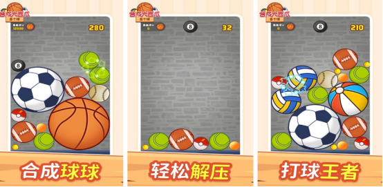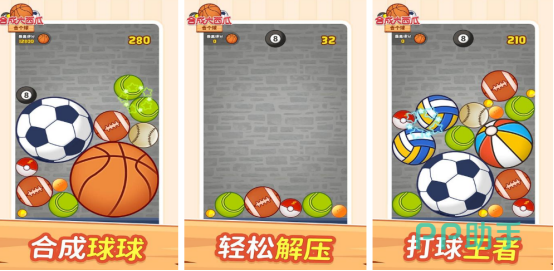 以球体替代传统水果,构建全新视觉体系:从乒乓球起步,经网球、排球、足球,最终升至篮球层级。开局后通过滑动操作控制球体落位,同级球体触碰即完成合成,并实时累加积分至全局排行榜。玩法简洁但富有成长反馈,利于持续挑战个人最佳成绩。
