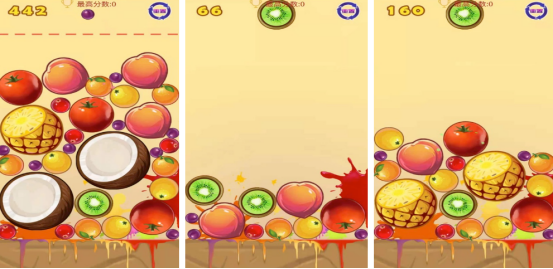 本作采用高清动态渲染画面,强化沉浸式合成体验。核心玩法延续经典“两两合并”规则,关卡由易至难逐级开放。水果自屏幕顶部随机下落,包含蓝莓、草莓等多种基础类型;玩家需通过左右滑动精准调整落点,使同等级水果接触后升级,最终达成大西瓜合成目标。