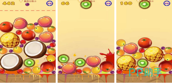 采用清新扁平化美术风格,界面布局清晰,交互逻辑直观。每关设定明确分数门槛,玩家需将相同水果两两配对合成,获取对应积分。舒缓背景音效营造放松氛围,助力玩家在碎片时间中稳定输出,逐步刷新通关纪录。