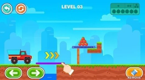 采用清新卡通渲染风格,主打轻量级卡车驾驶体验。关卡结构清晰,设有高度差平台、移动浮桥、限时通道等多样化机关,考验玩家对距离预判与时机把握能力。操作逻辑简化为方向滑动+加速按键组合,适配碎片化游玩场景,同时保留倒车镜切换、喇叭交互等细节功能。