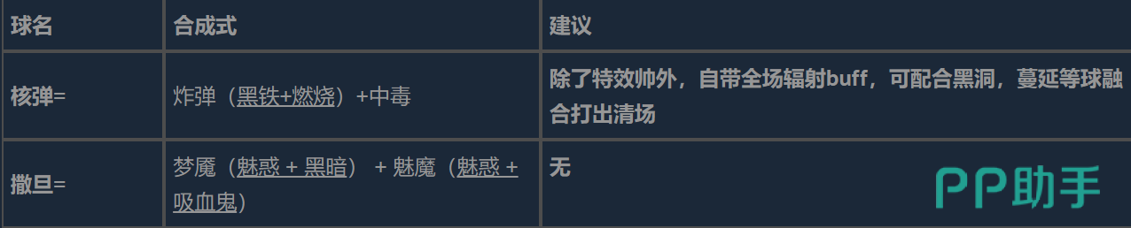 球比伦战记的合成系统十分复杂,球比伦战记合成表图文并茂的探索只是入门的开始。核弹的辐射清场、诺斯费拉图的三球奇迹,各类功能件的合理组合,无不是通往新世界的大门。玩家要熟记这些核心公式,即炸弹加中毒、黑暗配太阳等,根据局内掉落的材料来灵活地调整自己的策略。只有将合成熟记于心,才可游刃有余地在瞬息万变的战场上发挥出合成的威力,创造出现实中所不能企及的奇迹,从而成就一段段传奇的通关佳话。