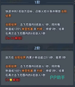 技能二是可以快速的冲向一名目标,同时召唤火焰分身输出,会击飞范围内的人1秒,同时会造成120%的伤害和灼烧效果,持续时间是5秒,结束之后范围内的人会再次被击飞1秒。