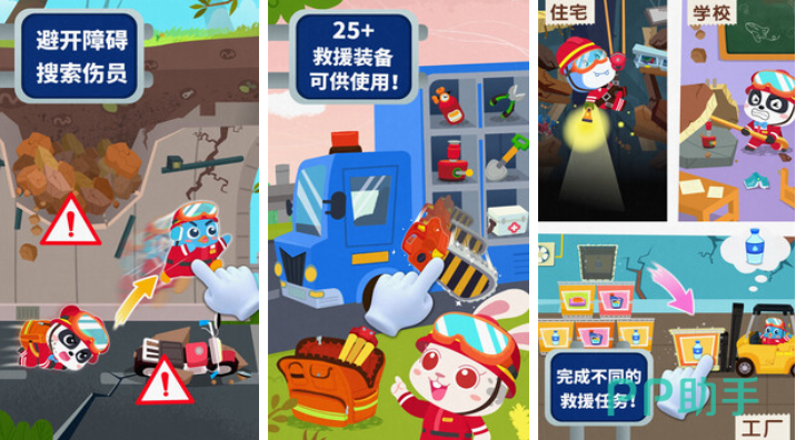 基于真实防灾知识开发,涵盖震前准备、室内避险、户外逃生、灾后互助四大模块。通过角色扮演完成加固家具、储备物资、识别安全三角区等关键动作,同步穿插地震成因科普动画与应急口诀跟读训练。