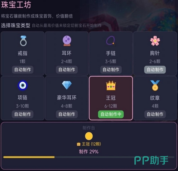 核心玩法围绕“矿石→原石→宝石→首饰”四级转化链展开:开启矿石箱获取基础原料;通过不同工艺节点提升单品价值;随进度解锁镶嵌台、设计室等高级工坊;逐步构建覆盖采集、加工、销售全流程的个人珠宝产业体系。兼具模拟经营的真实感与数值成长的爽快感。