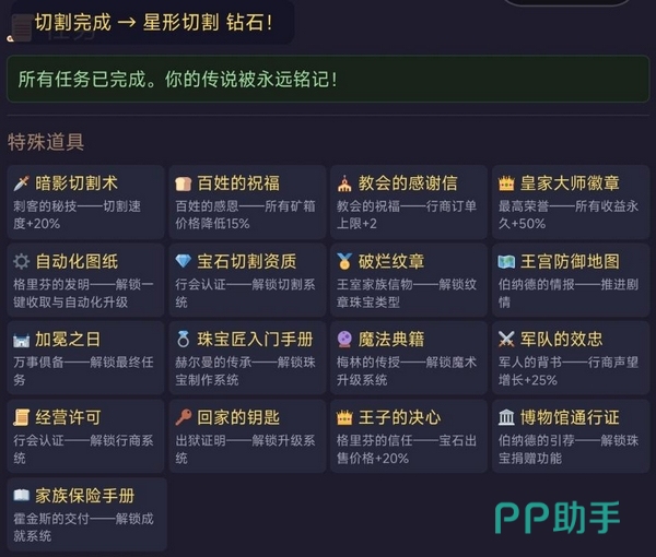 综上所述,“从零开始成为宝石大师”虽为小体量作品,却集成了任务引导、工坊科技树、品质评级、多阶合成等成熟机制,系统结构完整、细节打磨到位。作为一款主打轻松体验与渐进成就感的放置类新品,值得喜欢模拟经营与资源管理玩法的玩家尝试。