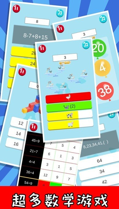 涵盖加减法速算、数字比较、图形计数、时间认知四大核心模块,细分为7种渐进式玩法。特别设置双人协作模式,支持家长与孩子同步答题或轮流挑战,实时反馈正确率与反应时长。系统基于AI动态调整题目难度,确保孩子在“跳一跳够得着”的节奏中持续提升计算速度与准确率。