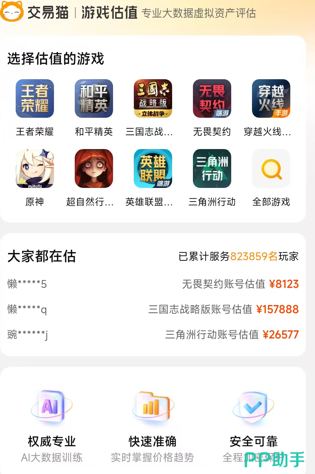 很多玩家在出售奥比岛之前,可能对于游戏的账号价值是不太明确的,就怕出售以后发现价格太低,导致亏损了很多钱,那么是可以使用交易猫的估价功能,该功能比较权威,虽然是由ai进行分析,但是经过多年的分析,其分析的价格是十分精确的,是可以供玩家们采纳使用的,同时交易猫精选各类真实商品,官方验号服务全面覆盖超100款热门游戏,验号信息做到真实、完整、准确,为玩家提供可靠的交易保障。下载使用方法会根据设备类型有所不同,安卓用户点击上方按钮即可直接下载,iOS用户则可前往交易猫官网便捷使用。