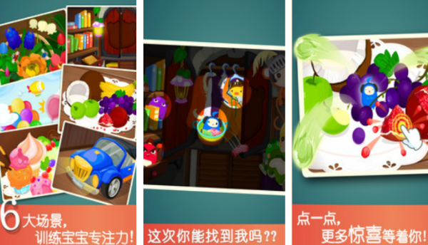 该游戏是专为低龄儿童设计的,益智休闲亲子类型游戏,其画风明亮可爱,玩家将会扮演宝宝在卧室,客厅,花园等温馨的场景中寻找藏在沙发后、玩具箱里甚至是窗帘后面的卡通角色。且游戏操作极为简单,只需要点击屏幕即可完成互动,因此找到目标后还会有欢快音效和动画奖励哦。