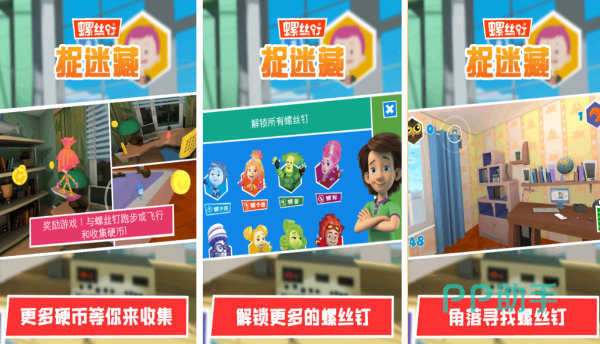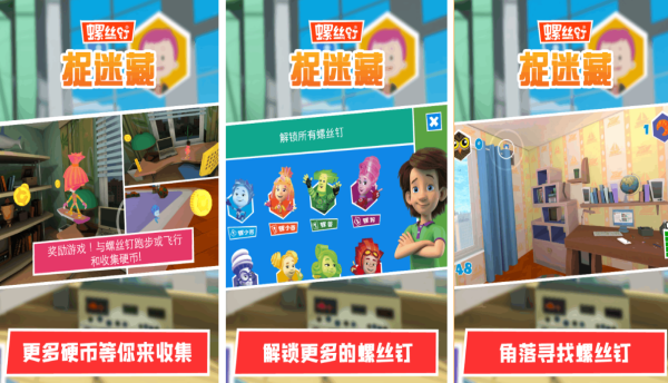 该游戏改编自同名动画,玩家将会扮演小螺丝钉吉姆或者妮娜,在充满机械和工具的世界里,寻找藏在齿轮管道工具箱里的其他螺丝钉伙伴,并且游戏中的每个关卡都有独特的场景和谜题,因此玩家只有利用道具或触发机关,才能够找到这些隐藏的角色,同时其还高度还原了动画中融入了简单科学知识的设定,从而让玩家还能在游戏中学习哦。