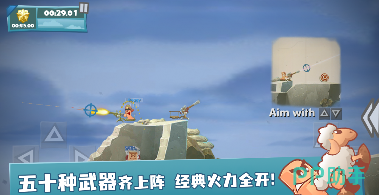 武器系统丰富多元,涵盖燃烧炸弹、香蕉炸弹、黑利彗星等30余种特色载具与投射物,每种具备独特弹道机制与战场效果,支持自由组合与临场切换,助力玩家构建差异化战术体系。