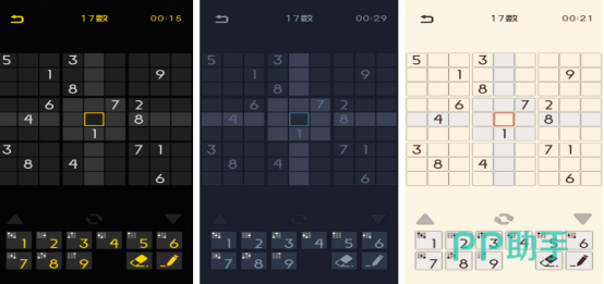 本作以高精度美术风格打造,支持多套主题皮肤与自适应夜间模式:当环境光线减弱时,界面自动切换为低亮度深色方案,有效缓解视觉疲劳。除经典9×9模式外,同步提供4宫格、6宫格等入门变体,覆盖初学者至进阶玩家。题库总量超800关,难度梯度平滑;并拓展X数独(对角线约束)与百分比数独等衍生规则,增强策略维度。