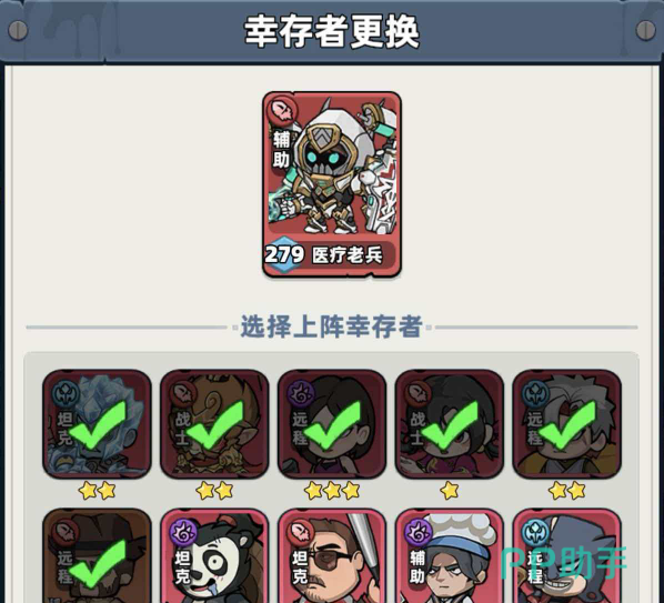 角色替换操作极为直观:进入主界面后点击【幸存者】,再点选右下角【布阵】按钮,即可查看当前上阵阵容。任意点击某位角色头像,系统将自动跳转至换人页面。从底部幸存者列表中选取目标角色,确认更换即可完成无损替换。关键一步在于勾选【同步更换技能书】选项——该功能可完整继承原角色的主动技能与全部被动技能,无需重新搭配技能链,大幅降低养成成本。