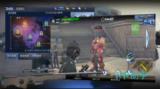面对的反恐任务特别丰富,比如有击杀人质或者是进入敌人的阵营中等等,大家可采用经典的第一人称视角,加入刺激的射击战斗体系中,其中还有不同的难度等级,任由大家挑战,从基础的新手入门级,再到高难度的挑战等。其中也爱配备主武器以及副武器,大家都可结合敌人的类型正确搭配,屏幕右下角都有安装子弹或者是发射子弹的虚拟控制按键。