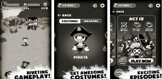 将恐怖元素以及跑酷生存深度融合,黑白复古的画风,就仿佛是旧电影一样,特别恐怖,和主题完美契合。大家需要操控其中的人物,主角在噩梦的世界里逐渐奔跑,核心的任务就是及时摆脱恶魔的疯狂追击,通过点击屏幕并滑动屏幕的方式,就可以巧妙做出各种动作,包括下滑或者是跳跃。在躲避障碍物的同时,还要收集沿途各种炫酷的道具,获得更高分数。