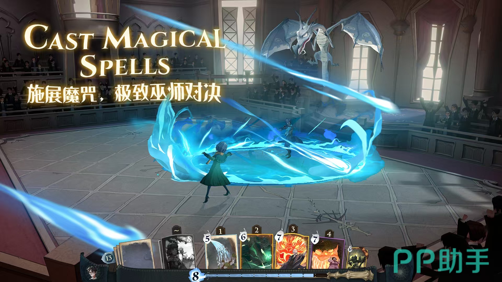 本作是《哈利波特》原著官方授权的结合了角色扮演的卡牌策略手游。故事设定在原作剧情结尾的十年后,玩家将以魔法新生的身份入学。从收到录取通知书开始,深度体验魔法校园生活,核心玩法为即时卡牌对战。玩家通过推动卡牌可以施放各种经典咒语,或者召唤神奇动物进行战斗。游戏画风采用独特的欧式复古绘本美术风格,视觉享受绝佳,营造出了浓郁的魔法氛围。