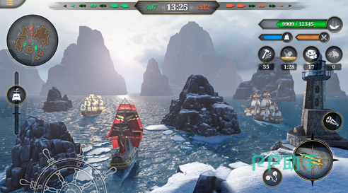 这款游戏的整个海洋世界非常宽阔,没有任何固定路线所束缚,有三种主要玩法方向。能够随意切换,慢慢的解锁下来就能够玩出60多种不同的侧重点,海域范围非常大,跑起来也不会单调。最有意思的是手动开船,需要时刻盯着风向,跟着洋流调整方向,并不是点一下自动航行就完事,手忙脚乱的时候反而会非常的真实,不像其他游戏那样敷衍。