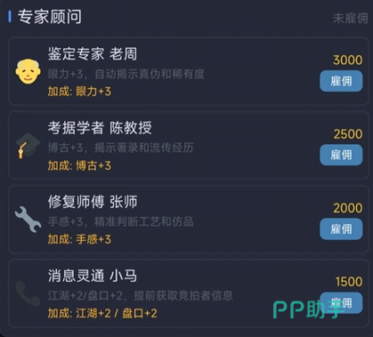 玩家初始身份为一名古玩爱好者,尚未具备专业鉴定能力。面对琳琅满目的瓷器、玉器、书画等藏品,仅凭肉眼难以准确识别真伪与年代特征。此时可启用“专家顾问系统”,通过消耗资源聘请资深鉴定师协助评估,降低误购风险。