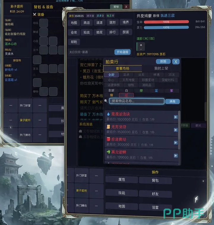 探索过程中,物资用途呈多线发展:既可用于炼制丹药、锻造法器以提升自身修为,也可上架拍卖行交易换取灵石,或用于宗门贡献兑换限定技能。实力越强,可进入的地图层级与副本难度越高,形成正向成长循环。
