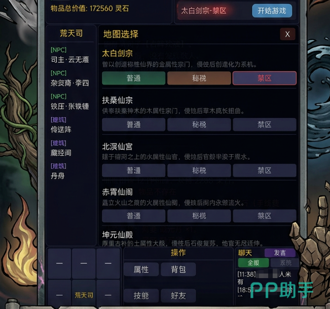 世界地图采用区域分层设计,初期开放凡域、坊市等安全区域,便于新手熟悉操作;随着修为提升,可逐步解锁禁地、古墟、陨星谷等高危地带。这些区域虽风险更高,但所获灵材、功法残卷及稀有法宝的价值也显著提升,为后期突破瓶颈提供关键支撑。