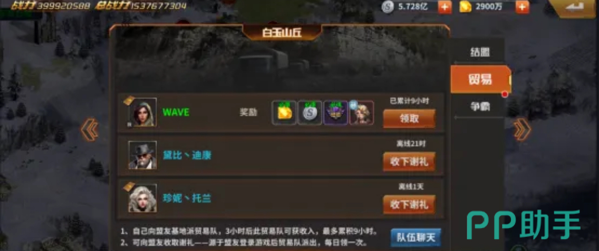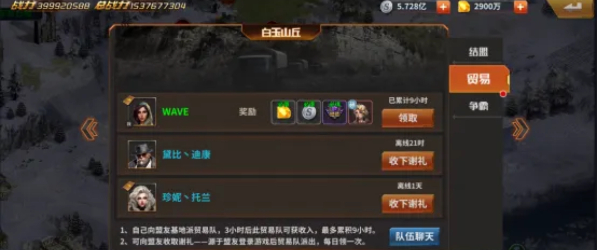 同时基地的雕像数量也仅限1个,雕像的作用是增加弹药,石油以及银币的产量,还能够直接领取资源;银行是可以提升储存银币的数量上限,数量仅限1个;油库的作用是提升储存石油的数量上限,数量仅限1个;兵工厂的作用是产出弹药,还可以提升储存弹药的上限,数量也仅限1个。另外基地里还有援建,供电,救火以及烧烤等功能,都可以带来一定的收益。