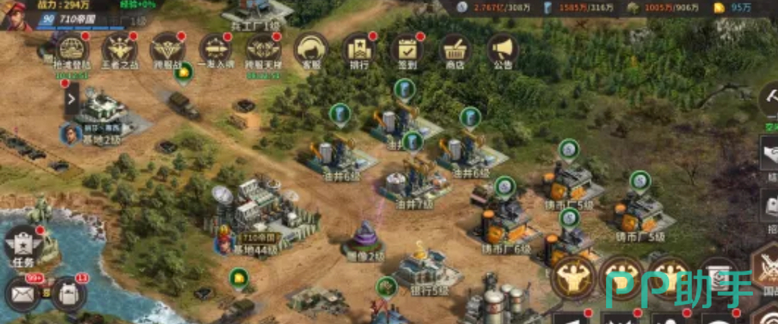 在游戏里基地建设是非常重要的,可以给我们提供丰富的基础资源,也是行军打仗的后勤保障,可以为我们的前线提供更多的保障。基地在完成新手引导之后就会立马开启,但是部分基地建设却只能在特定等级之后才能解锁,比如油井和铸币厂,油井是负责产出石油,铸币厂则是负责产出银币,而且等级越高解锁的数量也更多。同时基地的数量仅限1个,是提升基地所有建筑等级的基础。