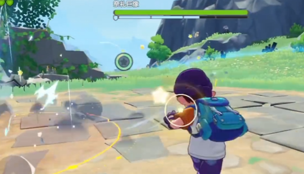 祭礼巨像打起来要分两个阶段来看。第一阶段他会在地面放出一整排地刺,站远一点就能躲开,不用贴着他打。他还会发出光波攻击,光波会持续造成伤害,地面上有红色范围提示,看到红色区域就绕开走。进入第二阶段之后,地面的属性变成双重的,情况比第一阶段复杂一些。这时候带上克制属性的宠物,能减轻不少压力,打起来也更稳。