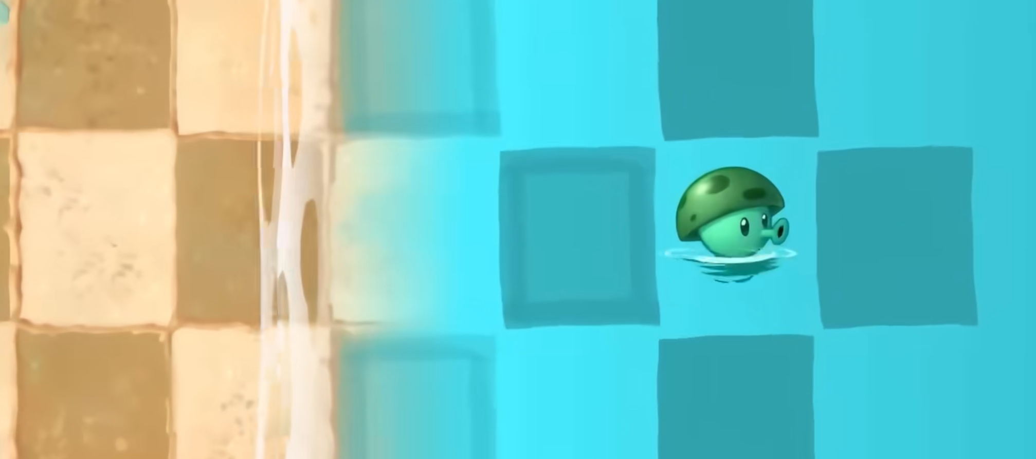 游戏里还有非常多的小细节,比如我们会在有些关卡上看到漂浮的高级植物,当我们通关这个关卡之后就会获得这个植物。还有很多植物的小表情也做了细化,比如海蘑菇,如果你把它放在陆地上那么它的伤害一般般,但如果把它放到海里它伤害就会增加一倍,并且当它进入海里的那一刻,我们可以看到它的表情变得更加舒展了,可以说是非常棒的细节设计。