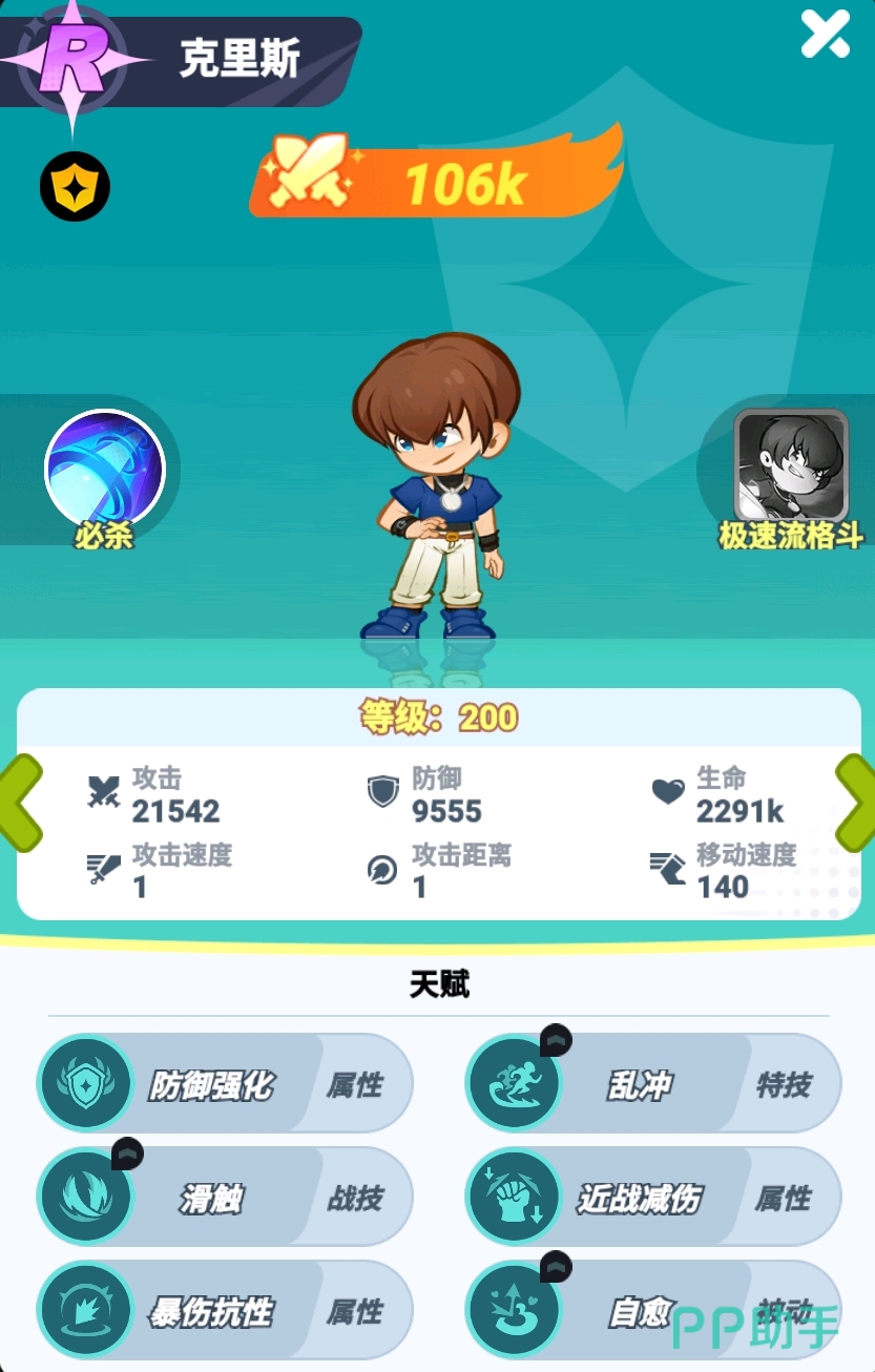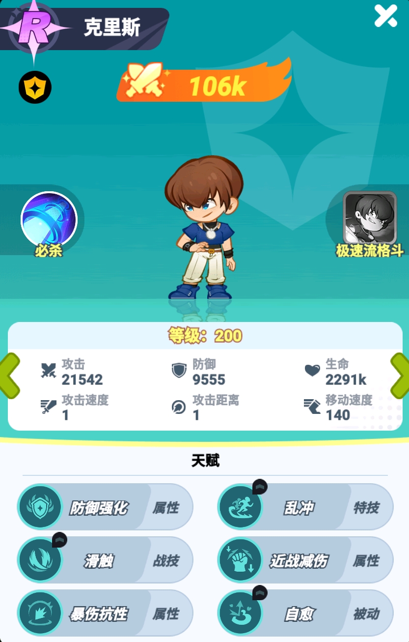 克里斯作为前排的御守角色有着较强的搅乱战局能力,尤其在他升到SSR后,不光能压缩敌方阵型,还可对敌方怒气值最高的敌人造成减怒效果,配合上自身不弱的输出,能让克里斯在战斗中为队伍作出极大的贡献,属于后程发力的紫卡角色。
