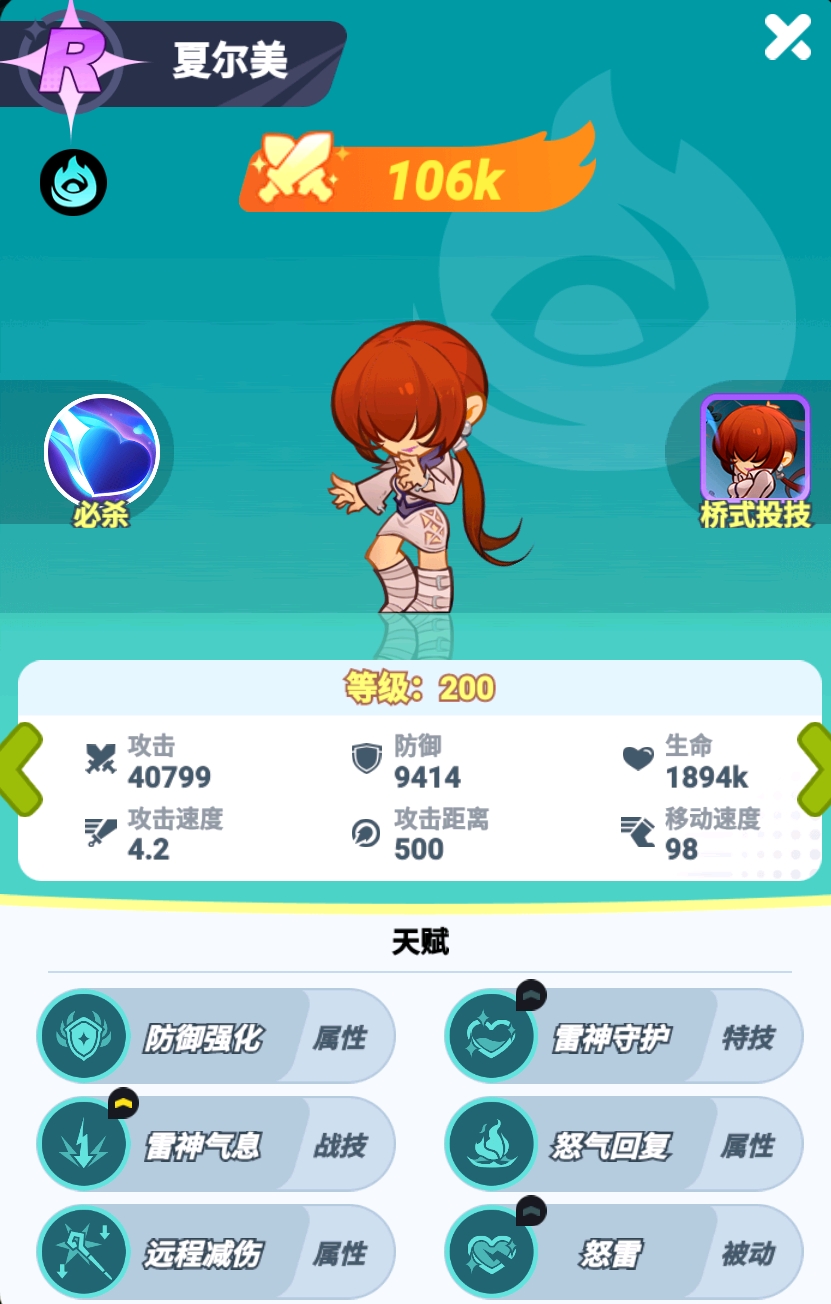 可对小范围内敌人造成高额倍率伤害是罗伯特的特点,解锁了奥义后还能对敌人施加破甲效果,因此不管是作为主输出来用,还是让他在前方负责为敌人上破甲buff提高主输出格斗家的伤害,都特别的好用,属于既有强度,同时实用性也拉满的紫卡。