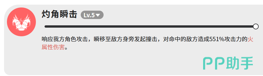 【灼角瞬击】为被动响应型技能,不占用主动操作节奏。当绑定角色发动普攻或技能时,炎灼角羊将自动瞬移至最近敌方单位旁并发起冲撞,造成551%攻击力的火属性伤害。该数值为全部技能中单次最高,且触发逻辑无缝嵌入输出循环,显著提升持续压制效率。