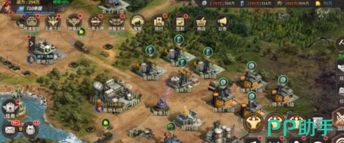 基地系统是游戏的核心成长路径之一。新手引导结束后,主基地即刻启用,但部分关键设施需达到指定等级方可解锁——例如油井(用于稳定产出石油)与铸币厂(持续生成银币),其可建造数量随玩家等级提升而逐步增加。值得注意的是,主基地仅限1座,所有附属建筑的等级上限均受其等级制约。