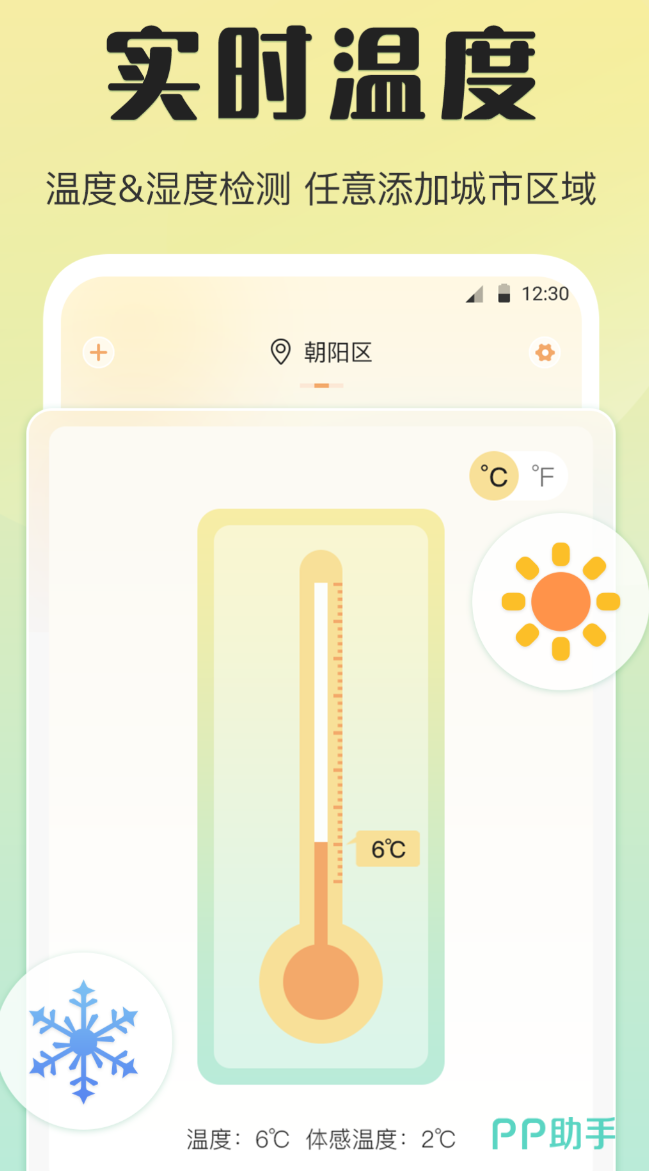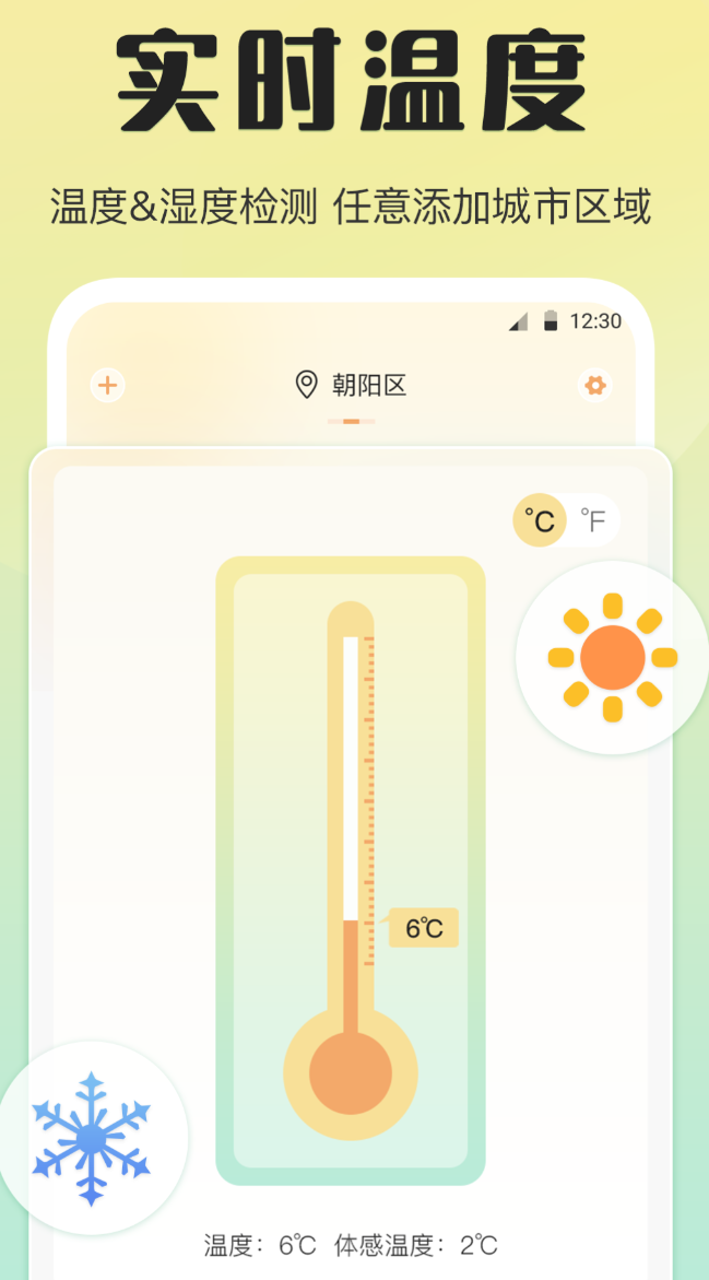 该应用通过手机内置传感器进行环境温度采集,需静置数分钟以完成热平衡,随后读数趋于稳定,实测偏差通常控制在±0.5℃以内。支持摄氏/华氏双单位一键切换,刷新间隔短至2秒,能及时响应室温波动。除核心测温功能外,集成2小时降水概率、7日天气趋势、实时指南针(含经纬度与海拔信息),便于居家调控与短途出行准备。可同时管理多个城市数据,历史温湿度曲线图清晰呈现变化节奏,有助于预判空调或取暖设备的启停时机。界面提供多套主题皮肤,操作逻辑直观,上手门槛低。
