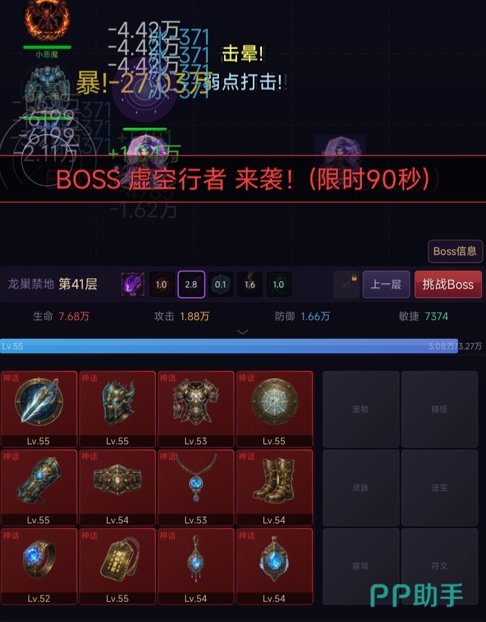本作采用经典“爬塔式”结构设计:初始阶段位于第一层,通过击败普通怪物积累基础装备与资源;成功击杀该层守关Boss后,即可解锁更高难度层级。层数递进不仅带来更强挑战性,更显著提升战利品品质与掉落收益。若遭遇强度瓶颈,玩家可自由退回上一层进行资源补足,待角色属性达标后再发起新一轮冲击。所有层级Boss均支持主动召唤机制,且每层Boss的详细属性面板均开放查阅,便于玩家提前评估战力匹配度,实现策略化挑战决策。