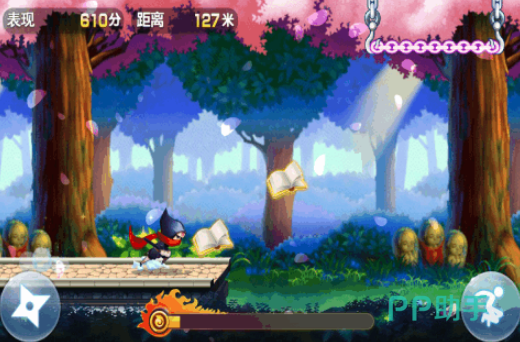Q版清新画风打造,人物造型时尚灵动,界面配色明快协调。游戏采用固定视角横版设计,左下角为跳跃键,右下角为滑行键,操作响应迅速。玩家可从多套忍者皮肤中选择心仪角色,在节奏紧凑的赛道中完成连贯动作组合,最终得分由通关时间、金币拾取率及障碍规避成功率综合决定。