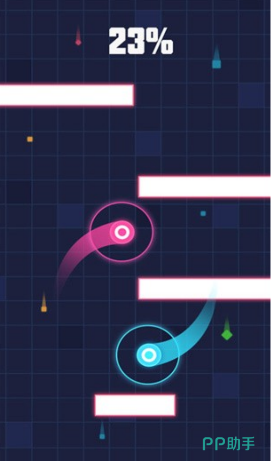 以高拟真物理引擎驱动的小球跑酷作品,初始角色为具备多种炫彩皮肤的弹性球体。障碍物形状(如三角锥、环形门、锯齿带)均由系统实时生成,碰撞即失败。玩家需在高速移动中识别间隙并调整轨迹,同时收集散落于路径中的星星,累计达指定数量后可激活小球等级提升系统,解锁新皮肤与基础属性加成。