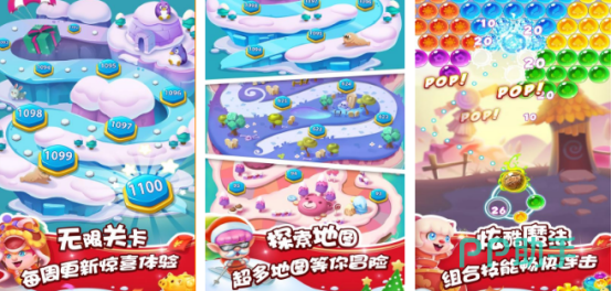 强调触控响应与色彩识别逻辑,相同颜色泡泡接触即触发连锁消除。玩家通过调整发射角度与时机,控制大炮射出对应色系泡泡,构建有效连接路径,清空全部目标方可通关。游戏提供多维度模式体系:含主线闯关、限时挑战及高难度无尽模式——后者中泡泡持续生成,分数越高解锁内容越丰富,对操作精度与节奏把控提出更高要求。