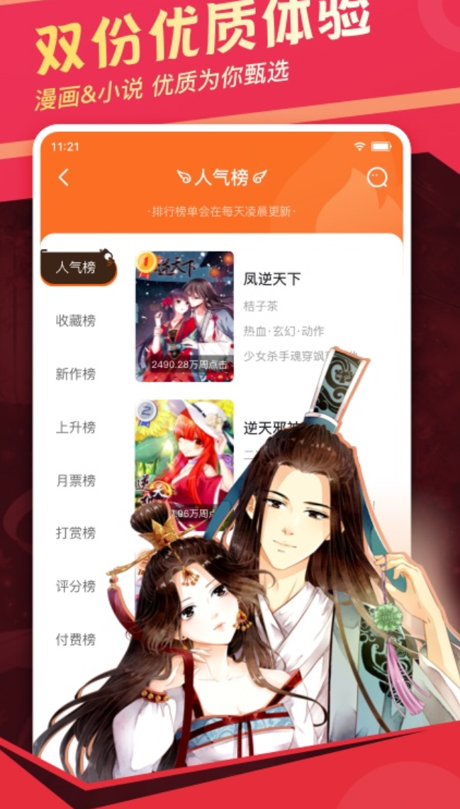 依托知音漫客出版体系构建,拥有超十万册正版数字授权资源,同步引进集英社、讲谈社等日方主流出版社的当期热门连载。覆盖少年热血、悬疑推理、古风仙侠、校园恋爱等核心品类,《斗破苍穹》《妖神记》等头部国漫IP全本入库。非会员用户享有全部章节完整阅读权限;界面支持横竖屏自适应切换,单手拇指操作区域优化合理,通勤场景下翻页响应迅速、无卡顿。