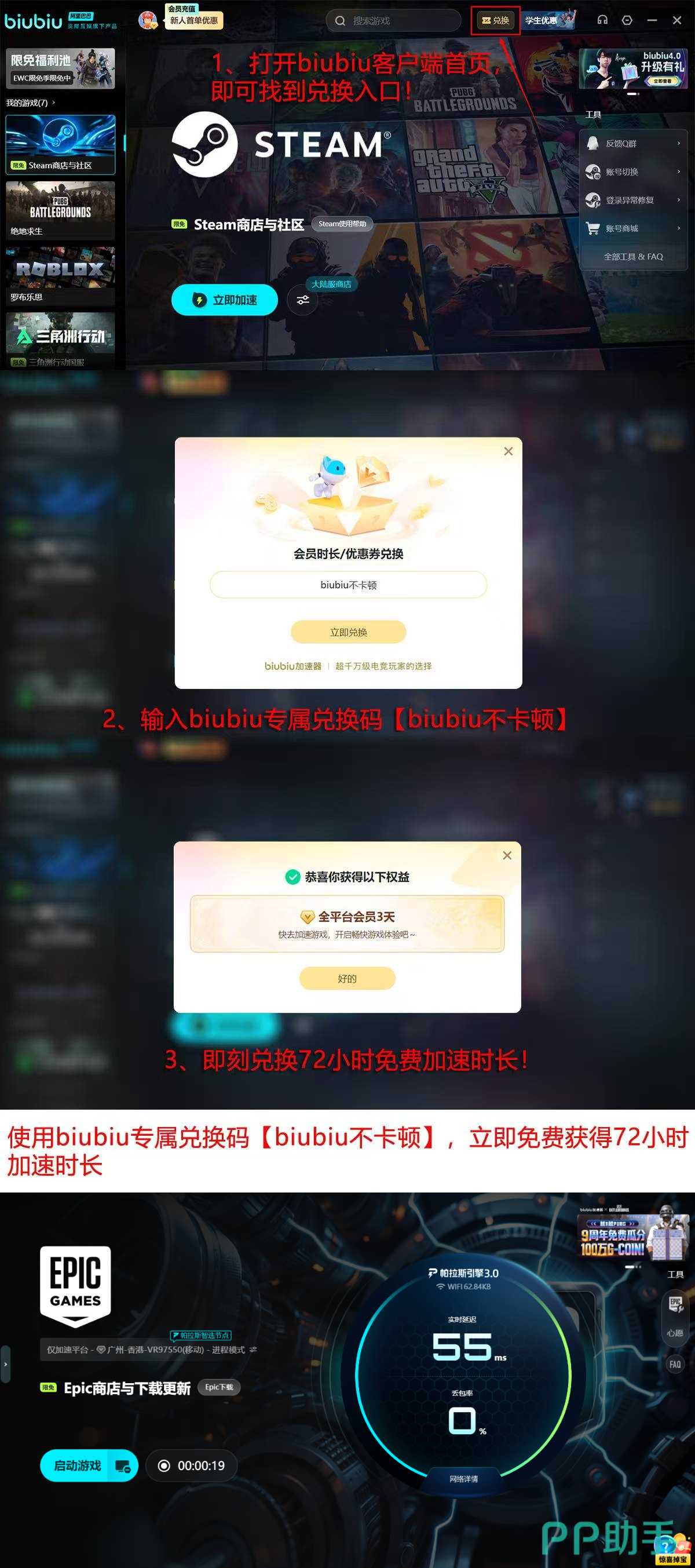 面向首次使用的用户,平台推出诚意试用政策:即日起完成注册即获新用户身份,可立即启用24小时全功能免费体验;在激活界面输入【biubiu不卡顿】还可额外领取72小时加速时长,总计达96小时无限制高级服务,充分满足EPIC商城浏览、大型游戏下载及多款3A作品联机测试需求。