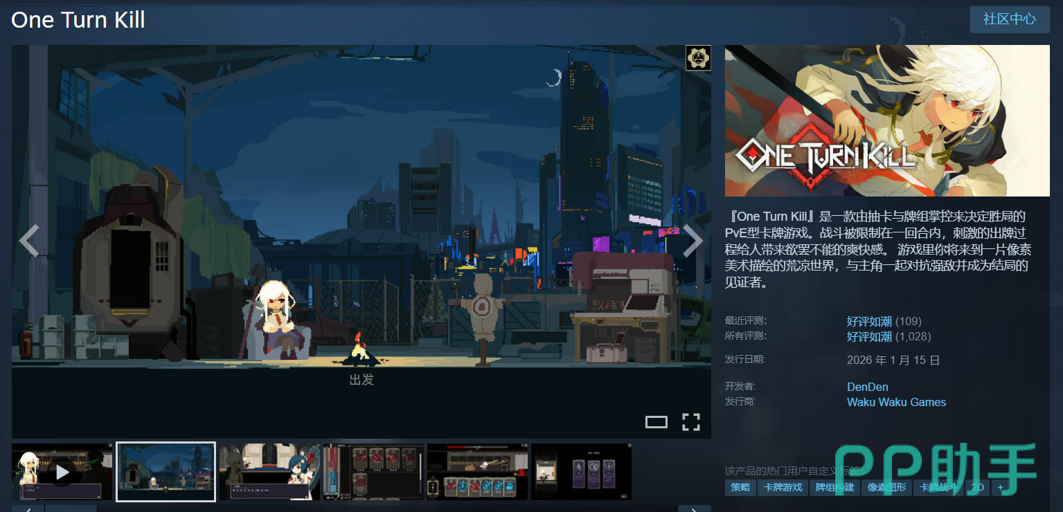 OneTurnKill是一款以卡牌对战为核心的策略型单回合制游戏,彻底打破传统回合制框架,采用“一击定胜负”的硬核机制。玩家必须在首回合精准计算伤害、资源与技能联动,实现对敌方的完全压制,否则将面临不可逆转的失败结局。该机制大幅提升了战术深度与操作容错率要求,使每一场战斗都充满高度紧张感与决策压迫性。游戏已于2026年1月15日正式登陆Steam平台,支持全球玩家直接下载并体验。