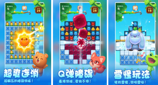上线多年持续保持高人气,覆盖全年龄段用户群体。核心玩法基于经典三消逻辑:拖动相邻方块形成横向或纵向三连及以上即可消除。关卡目标类型丰富,涵盖积分达标、指定元素清除、限定步数通关等多种模式。玩家可收集金豆荚资源,解锁魔力鸟助战,并触发连锁爆炸特效提升操作反馈感。
