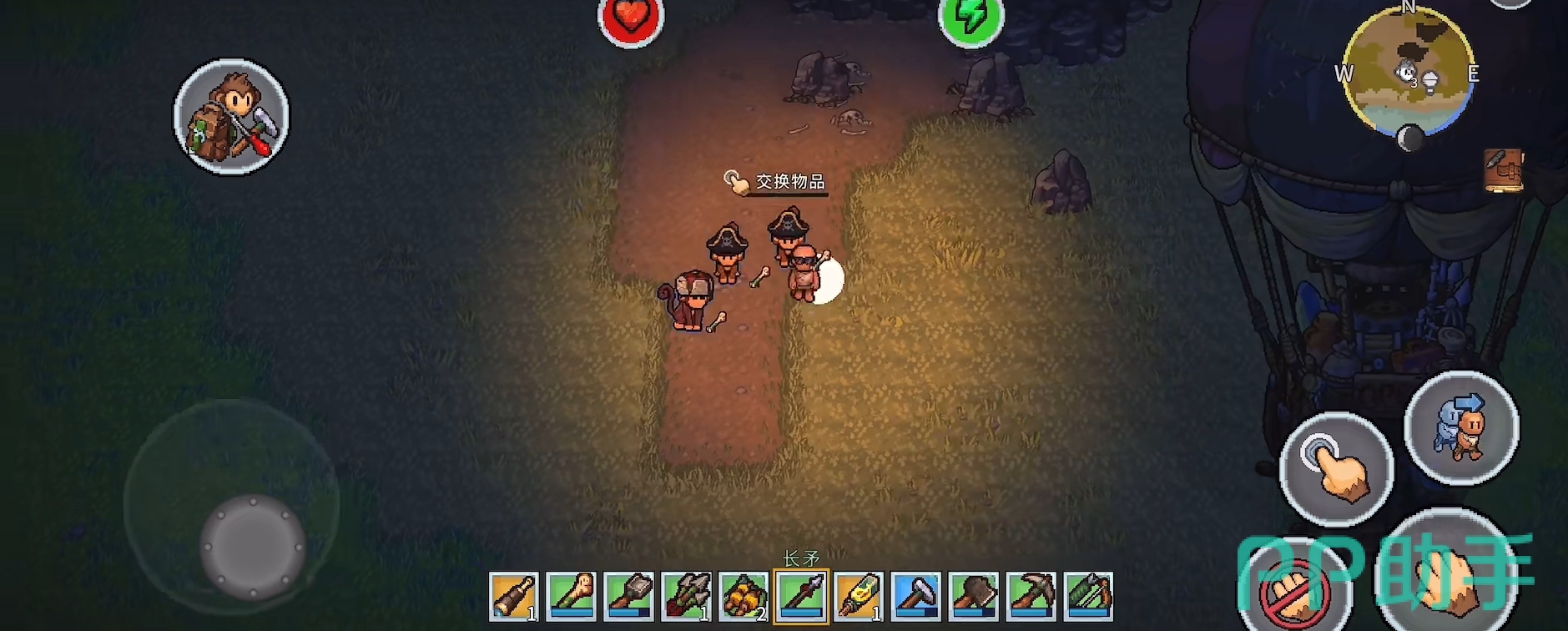 当然,岛屿上并非没有危险,一旦到了夜晚就会有各种敌人出现,玩家们唯有穿戴好装备武装自己,才能在与它们的交战中不落下风。不过,玩家并非只能在游戏中单打独斗,只要找到被关在笼子里的猴子并将它们救出,玩家们就能获得一位忠心的小弟,猴子也会通过模仿玩家的行为,帮助玩家去进行伐木等重复性工作,也会在敌人出现时对它们进行攻击。而且玩家还可制作装备供猴子使用,提升它们的战斗能力,让它们像保镖一样时刻保护自己。