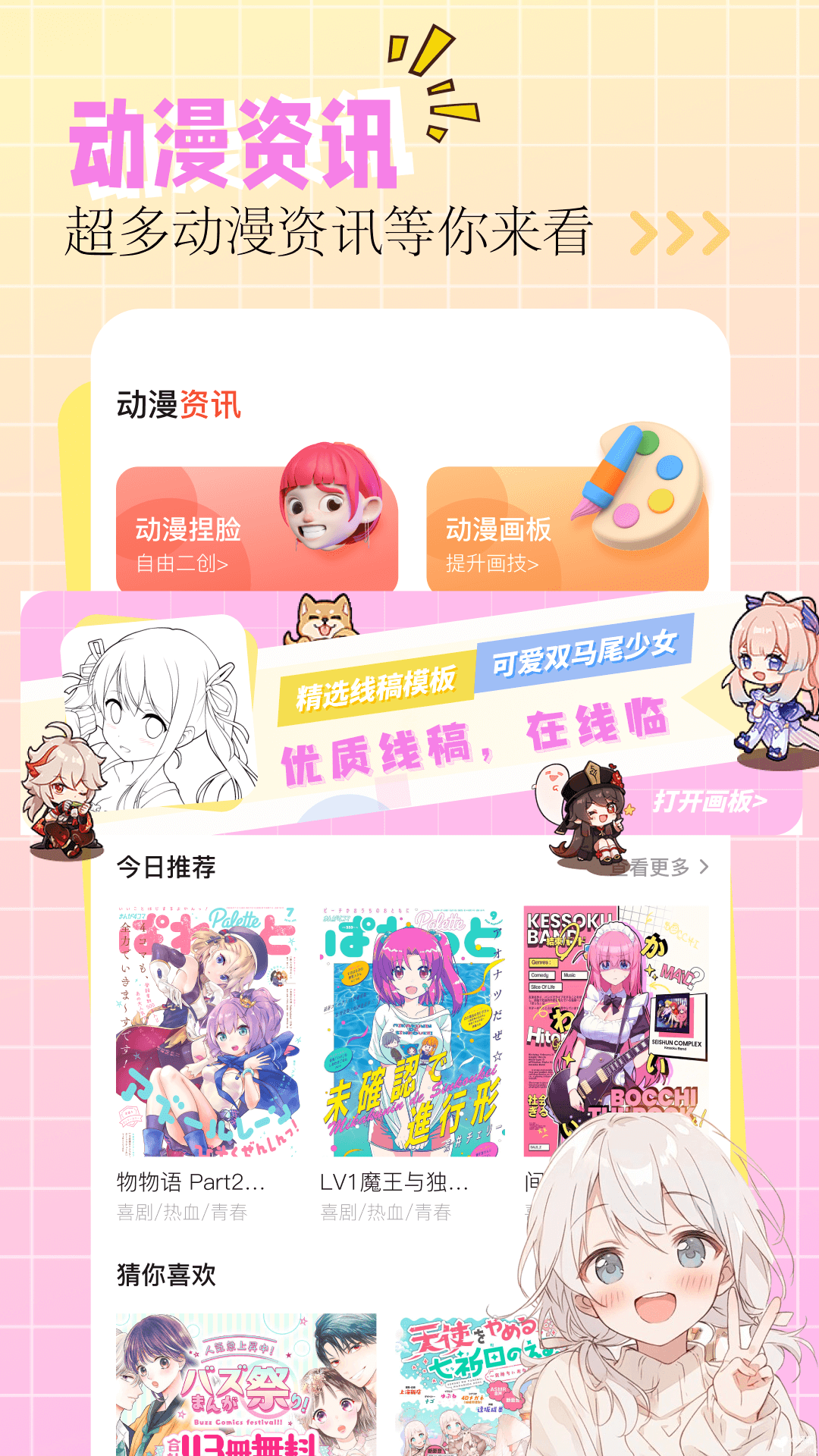 这款软件同步了日漫,国漫,韩漫等并且涵盖了不同的题材,每天都会稳定的去进行更新。还支持智能进行提前的加载和翻页没有任何的卡顿,画质非常清晰还原了不同的细节。还有着不同的操作模式,满足了不同阅读习惯。再没有网络的情况下支持进行缓存,这样再任何情况下都能进行查看。还支持自定义分类和订阅更新提醒,阅读历史也会进行自动记录。