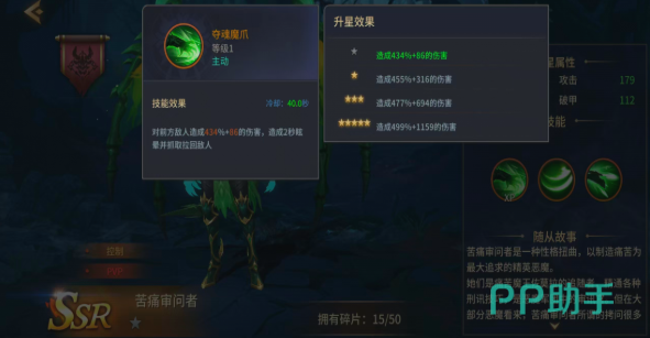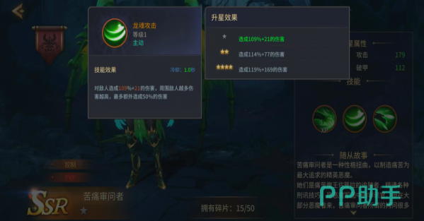 痛苦审问者的技能设计会有效结合刑讯压制的设定。一技能龙魂攻击冷却只不过是一秒,基础伤害是109%+21而且还会随着周围敌人数量去提升伤害,最多可以额外的增伤50%。面对渣怪的低阶怪物,就会拥有较出色的清场效率,这就是PVE里面很有实用性的清怪手段。可以帮助主力迅速的输出,然后处理杂兵,最后就可以聚焦核心的目标。五星解锁的二技能夺魂飞踢,就成为了团队输出的强力助推器。直线多段打击就可以打出高额的伤害,还可以给目标挂上5秒30%的破甲debuff。