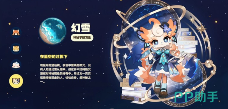 最后为大家介绍的就是幻雪,幻雪目前在星布谷地当中也是信息放出最少的一名人物,因为她可以为大家带来的效果就是观星以及占卜的效果,这一点的话,大家后期如果需要运气加成的情况下,就可以去跟她进行交互,她的外观设定上面其实也是参考了九尾狐的一些设定,尾巴后面毛茸茸的翘起来时这个角色的动作就会非常的明显,而且通过她的各种古老的语言,大家也可以看到很多的剧情相关设定。