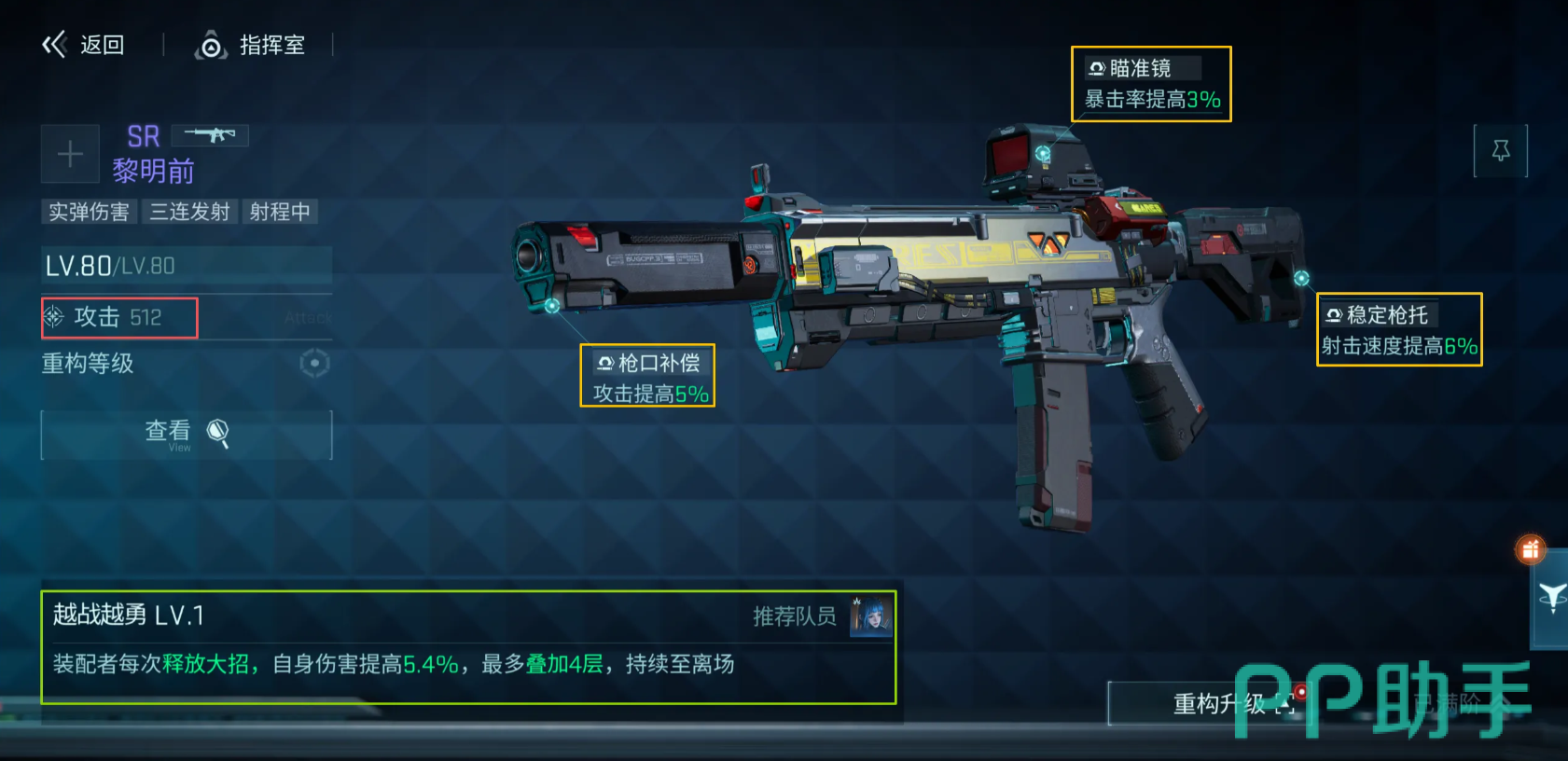 当前版本中,游鸮为综合强度突出的SSR级武器:其被动效果可延长单位出场时间,并额外赋予一次部署机会;同时提升自身及所部署角色6%伤害与12%射击速度,该增益支持多层叠加,适用于高频部署体系。另一高适配武器为精算师,具备“异动能”机制——每次释放终极技能时,自动对范围内生命值最低的敌方目标造成432%电磁伤害,契合斩杀与节奏控制需求。