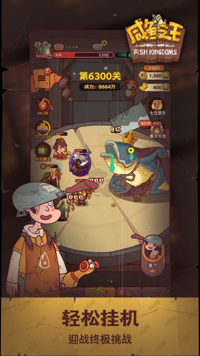 一个策略放置挂机卡牌养成手游,游戏以三国为题材,把经典三国武将都设计成了Q版咸鱼形象,通过放置挂机玩法自动获取金币、经验和装备等收益。玩家需要定期上线更新武将的装备,按照阵营克制和装备选择及时调整阵容。游戏设计了咸将塔、十殿试炼等资源副本,也加入了盐场争霸、黄金联赛等pvp模式,玩法丰富但也不至于太肝。