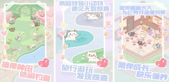 以互动养成为题材的高人气作品解锁庭院不断的扩张,另外,房屋的装修风格也由你来独自设定,加入了传统养成以及不同的特色设计,无压力养成机制,猫咪并不会出现饿死或者病死的情况,适合碎片化时间探索,只要每天利用几分钟补充猫粮,又或者是拍照,就能够轻松养成。