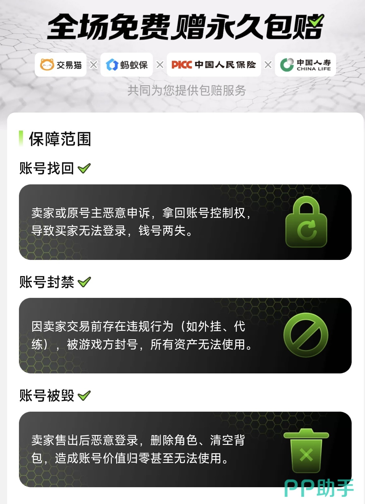 交易猫是业内首家为全部成品号提供“永久包赔”服务的平台。凡在平台挂牌出售的《大话西游归来》成品账号,系统默认赠送基础版包赔保障(赔付比例30%),卖家可自主升级至全额包赔,买家亦可在下单环节选择加购升级服务。该机制涵盖账号被找回、信息异常、资料不符、冻结封禁等常见风险情形,交易完成后如发生问题,用户可随时联系专属客服发起赔付申请,平台将在核实后按约定标准执行补偿。尤其针对高价值账号交易,此项保障显著提升资金与账号双重安全性。