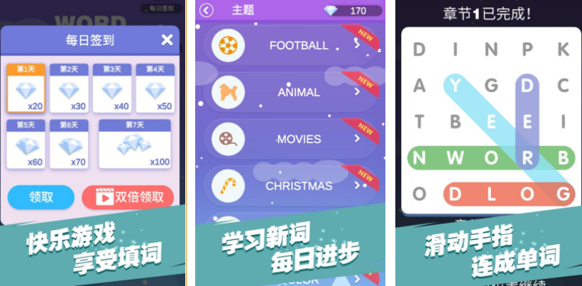 提到猜词的游戏,很多人最先想到的就是猜成语,全民填单词设定的是比较独特的英文单词拼写玩法,成员可以在碎片化的时间,按照每一关的要求,把字母连接起来组成单词,游戏里会有三种难度,玩家要根据自身的英语掌握能力,选择对应的难度挑战,每天游戏里还会更新大量全新的英语词汇,我想每天都能通过趣味的游戏方式,掌握更多的英语词汇。