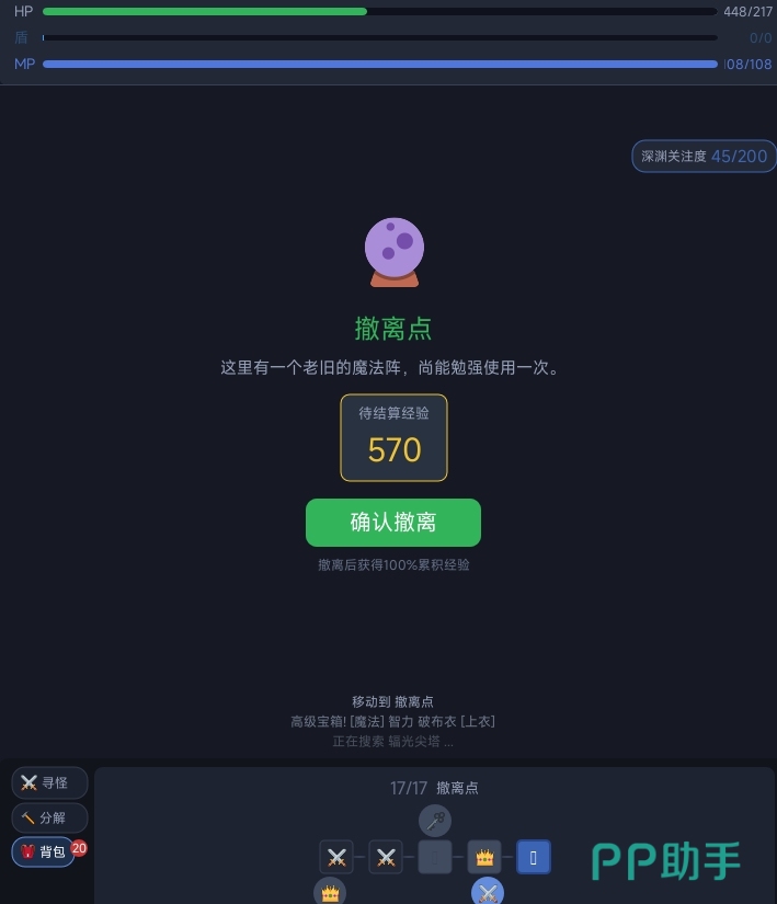 本作采用全自动战斗系统,角色会根据血量与法力值自动使用恢复道具,玩家无需手动施放治疗或补给技能。操作重心聚焦于地图探索决策:优先清理宝箱格可大幅提升资源获取效率;主路线节点必须全部覆盖以触发Boss战;其余区域可根据自身发育进度灵活跳过。击败最终Boss后,系统将自动激活撤离倒计时,玩家需在时限内抵达指定撤离点方可通关。通关后既可挑战更高难度的新章节,也可反复刷取已通关关卡,持续强化角色属性与装备配置。